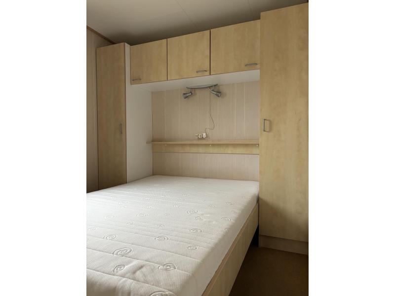 Quarto (cama de casal e vários armários de armazenamento.)