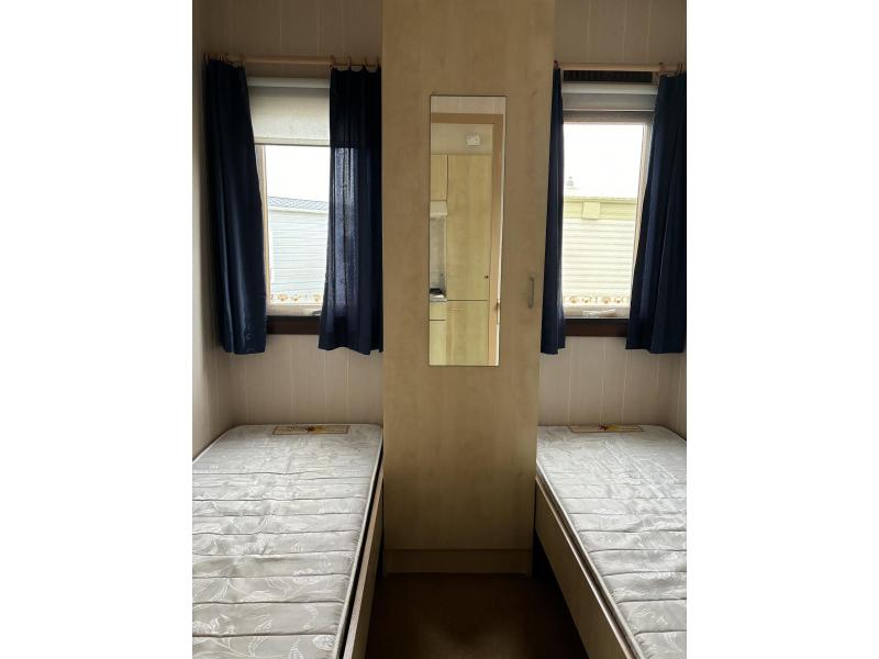 Quarto de crianças/hóspedes (quarto com duas camas de solteiro e armário de armazenamento.)